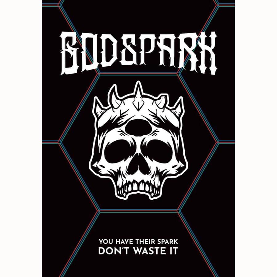 Godspark is a tabletop adventure game in which players take on the role of Saints reborn in a graveyard of gods. Using a few six-sided dice and a deck of playing cards, players explore the graveyard, fighting angels, meeting other Saints, and scavenging the divine energy that they can use to perform miracles and eventually Ascend and win the game.