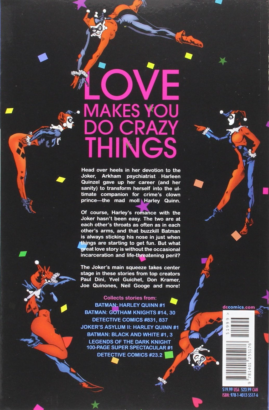 Collects stories from: BATMAN: HARLEY QUINN #1, BATMAN: GOTHAM KNIGHTS #14, #30, DETECTIVE COMICS #831, #837, JOKER’S ASYLUM II: HARLEY QUINN #1, BATMAN: BLACK AND WHITE #1, #3, LEGENDS OF THE DARK KNIGHT 100-PAGE SUPER SPECTACULAR #1 and DETECTIVE COMICS #23.2.
