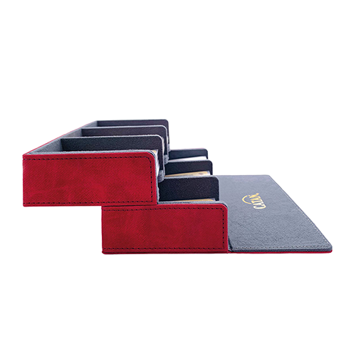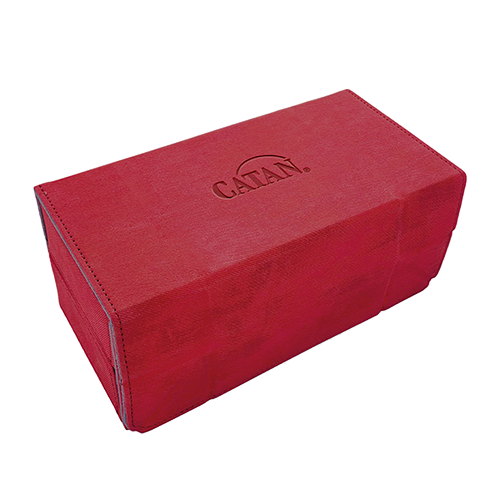 The all-in-one-solution to carry, organize, and hold your CATAN® cards during the game. The Trading Post works perfectly as a card holder with 6 card compartments that accomodate sleeved cards. The upper level can be seamlessly slid backwards to allow free access to all cards. Small notches at the bottom provide convenient access even to the last card. The compartments are designed to hold enough cards for the CATAN base game and 5-6 player extension. The cover of the Trading Post is fully removable and can be easily converted into a rigid dice tray. It is made from premium materials such as Nexofyber and soft inner microfiber lining. This protects the stored cards and provides a smooth sound for dice rolling. Strong magnets will keep this box safely closed, even when it is full.